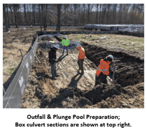 1. Garney Construction began work on January 17 to install box culvert sections under Hayfield Road near the Hayfield Pool in conjunction with work on the outfall and plunge pool, i.e., Friday January 17.